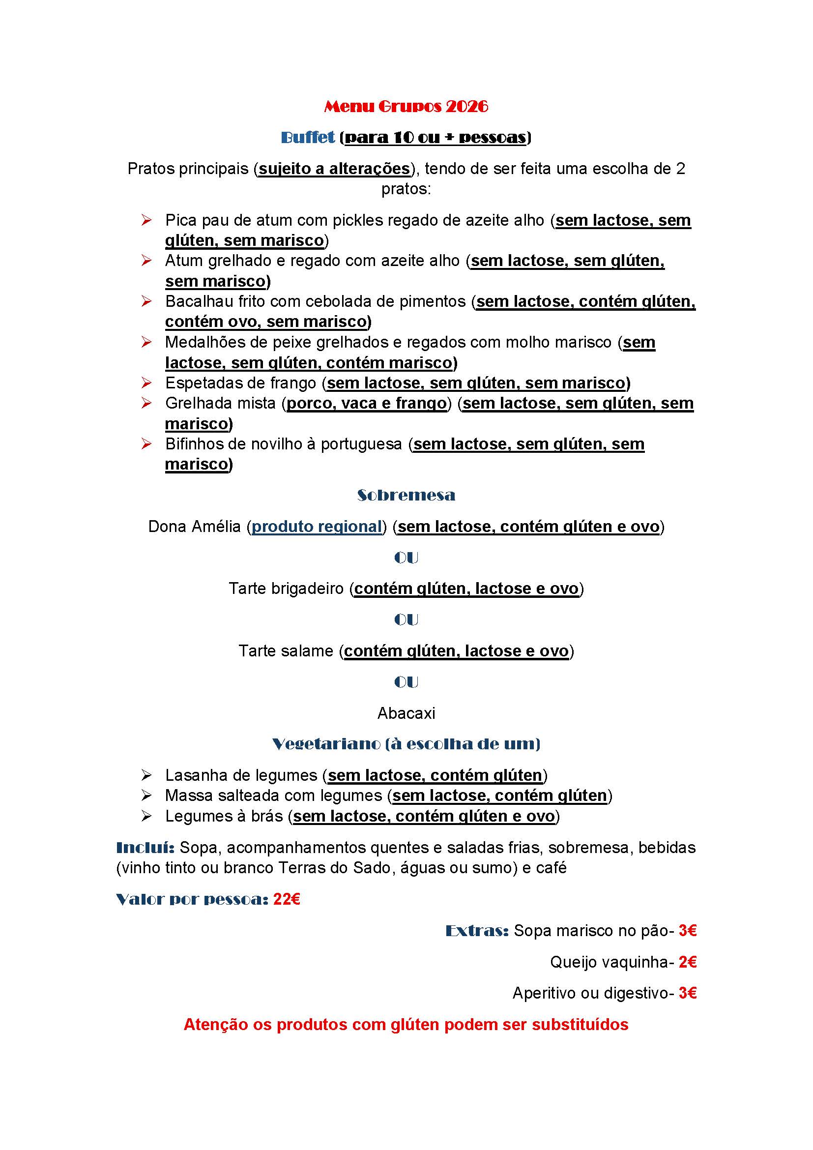 CUSTO BUFFET AICL 25.00€ PESSOA